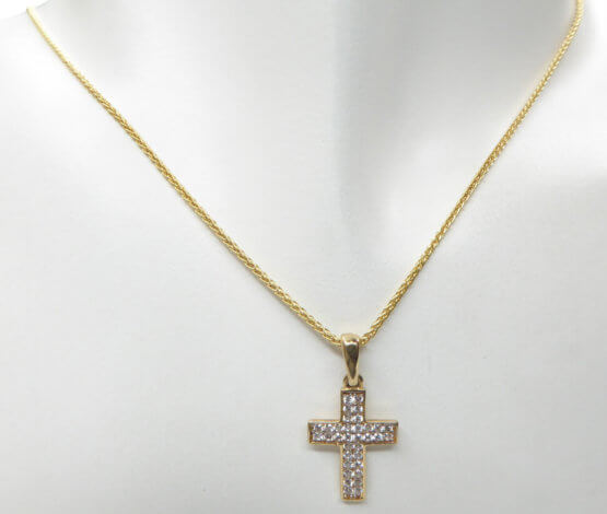 Deze geel gouden kruis hanger met zirkonia sieraad is een prachtige sieraad om te dragen.