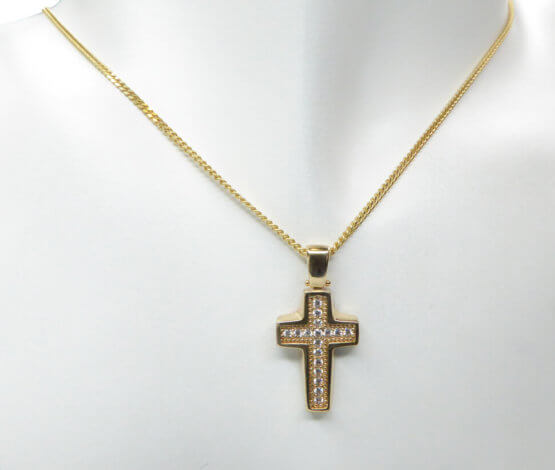 Bijpassende kettingen zijn beschikbaar voor deze gouden kruis. Vraag naar de mogelijkheden. Mail of bel ons!