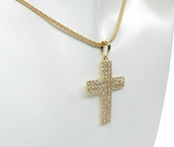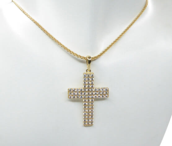 Deze gouden kruis met zirkonia’s sieraad is een prachtige sieraad om te dragen.