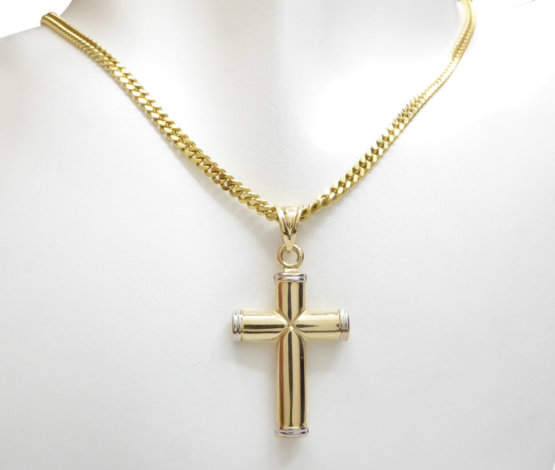 Deze gouden kruis zonder korpus met korpus is een prachtige sieraad om te dragen.