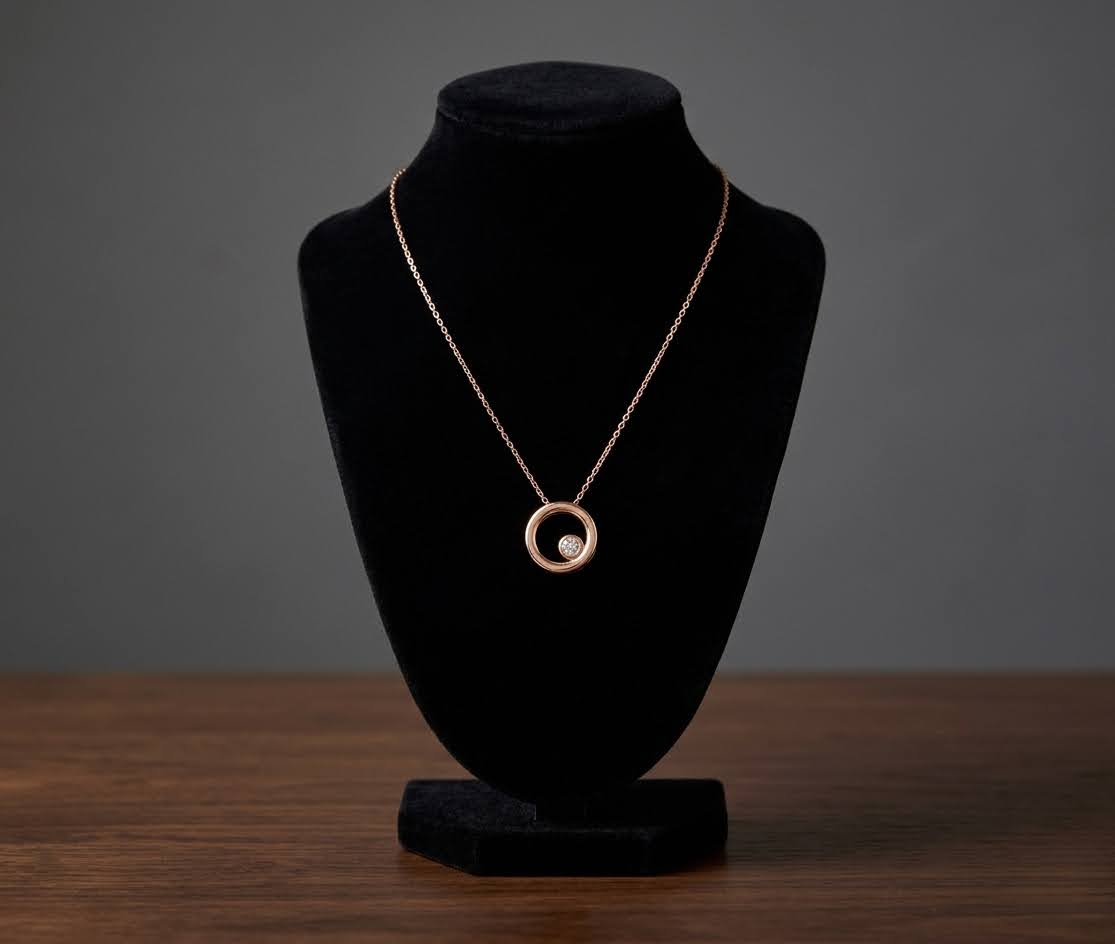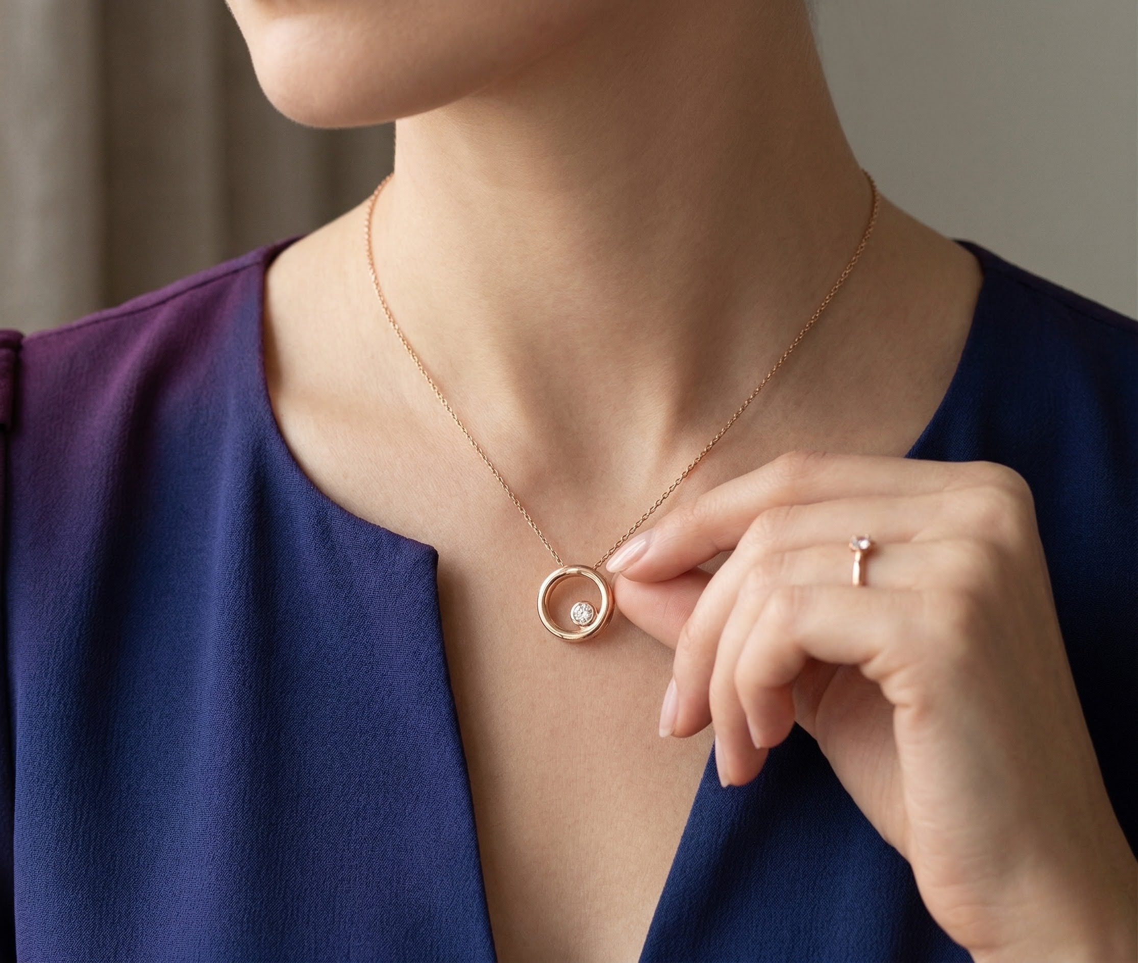 Bestel uw Christian 14 karaat rosé gouden ketting cirkel met centrale steen direct via atelierchristian.nl!