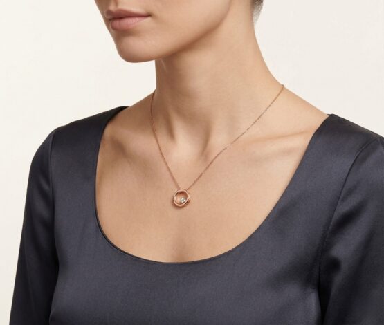 14 karaat rosé gouden ketting cirkel met centrale steen