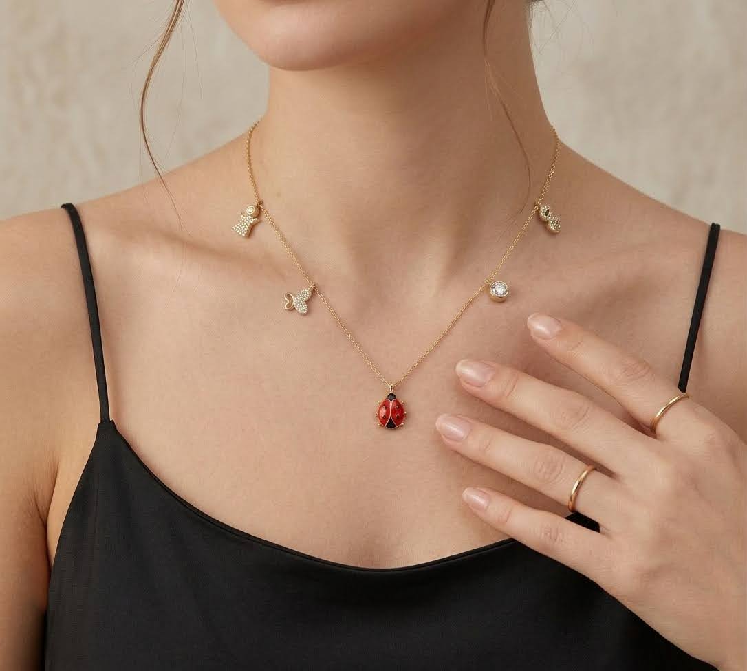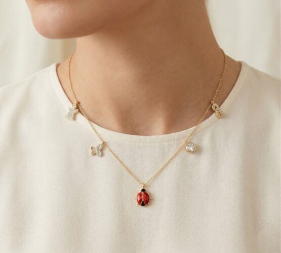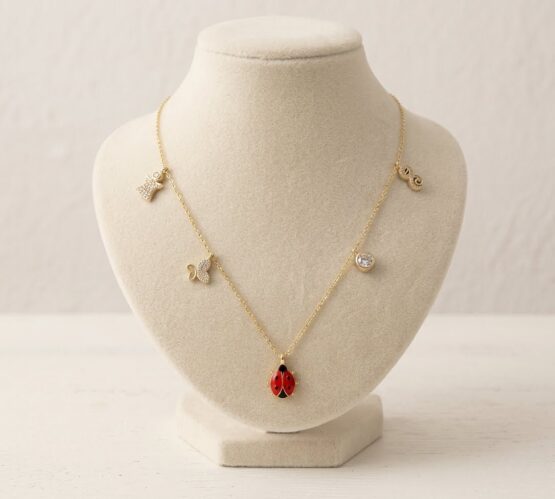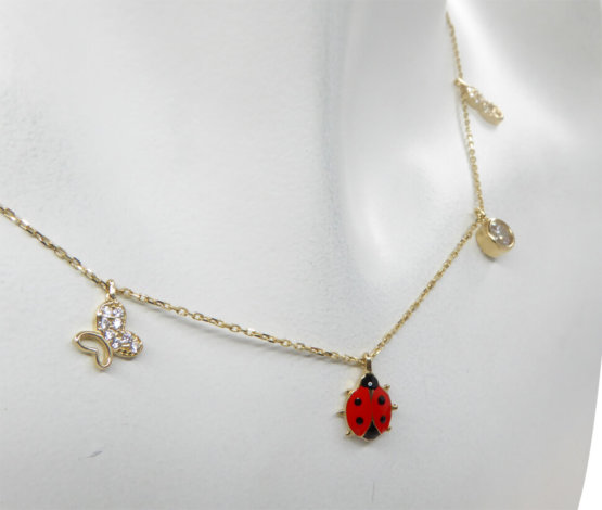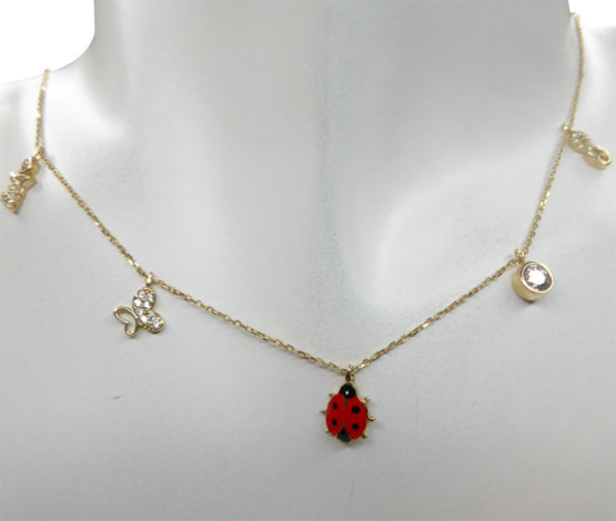 Deze gouden bedelketting met lieveheersbeestje is een prachtig sieraad om te dragen.