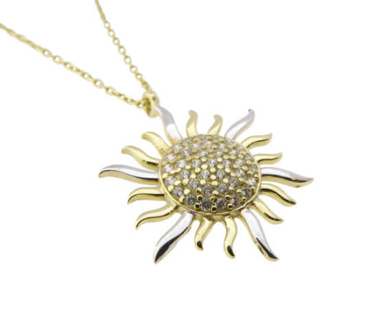De geel gouden collier en zirkonia zonnehanger is een prachtig sieraad om te dragen.
