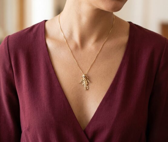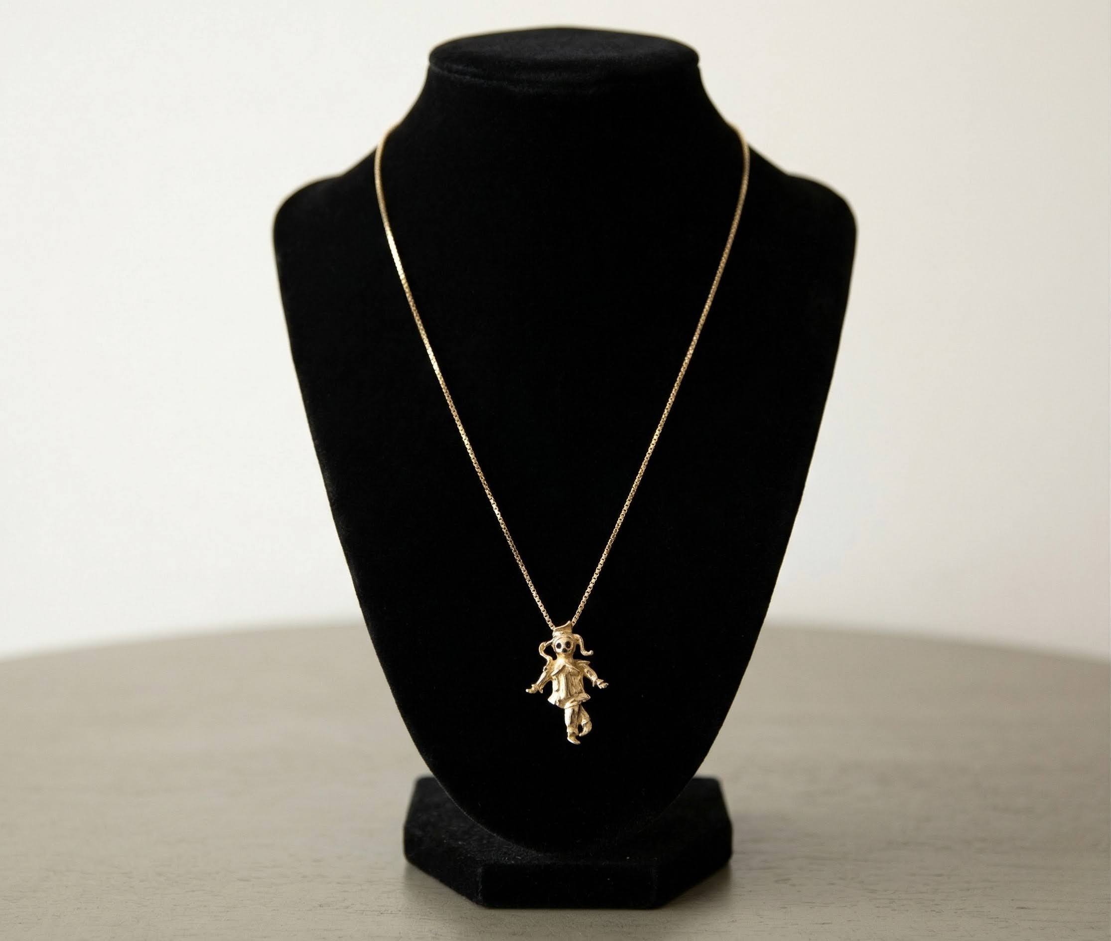 Deze gouden hanger met nar is een prachtig sieraad om te dragen.