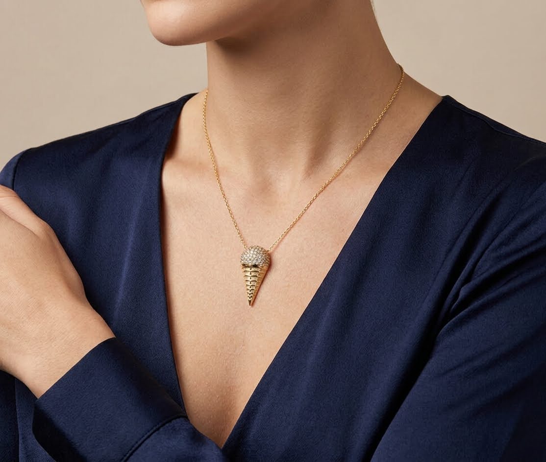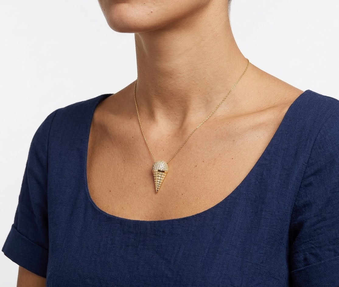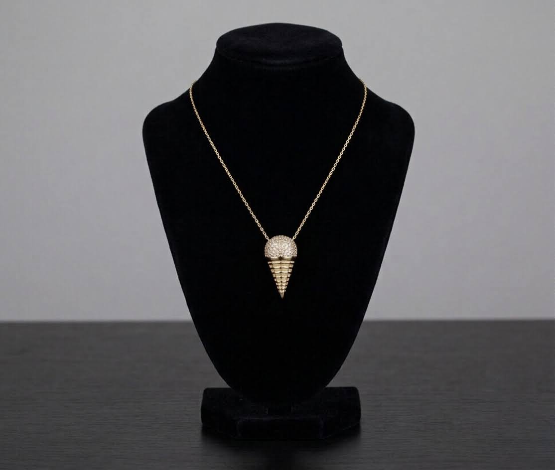 Deze gouden ketting met ijshoorn hanger is een prachtig sieraad om te dragen.