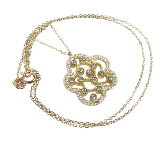 Deze gouden zirkonia roos hanger is een prachtig sieraad om te dragen.