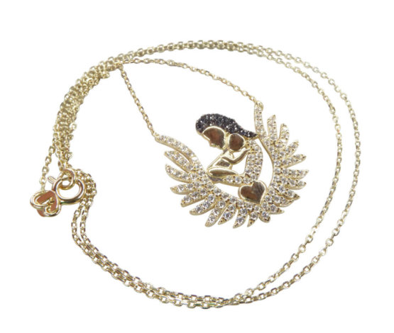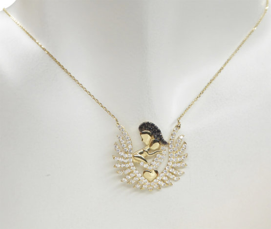 Deze gouden zirkonia baby en moeder hanger is een prachtig sieraad om te dragen.