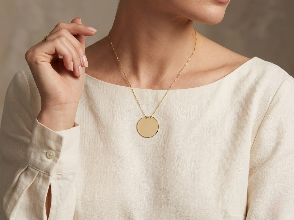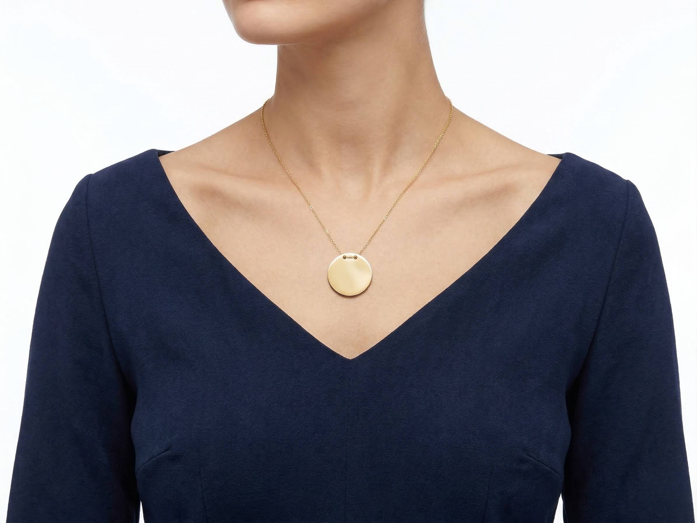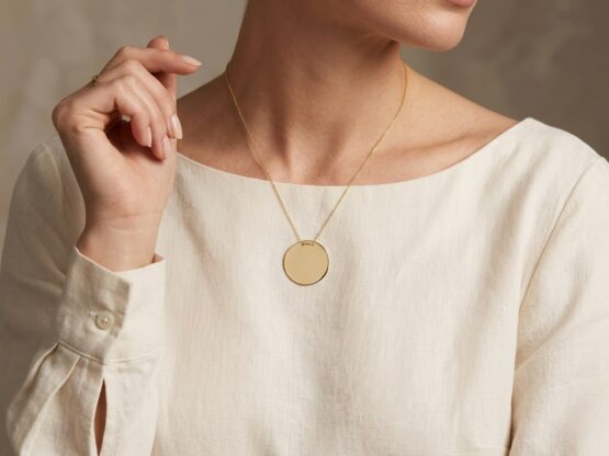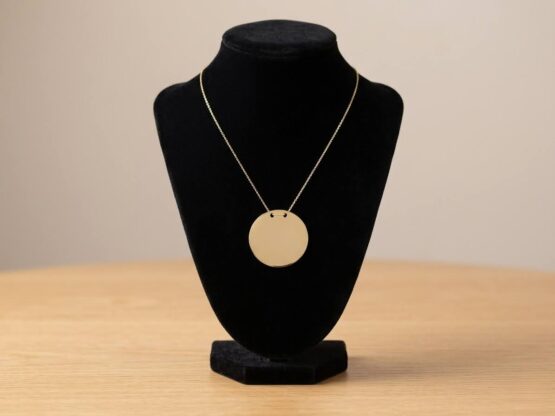 Deze gouden ronde hanger met ketting is een prachtig sieraad om te dragen.