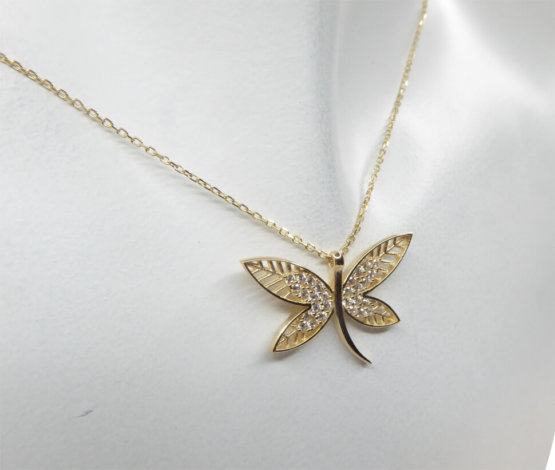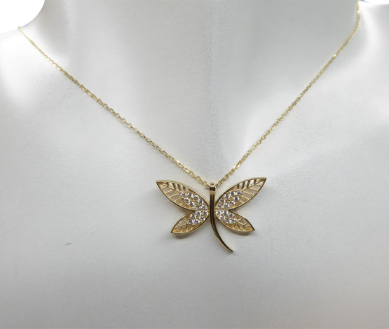 Deze 14 karaat gouden zirkonia vlinder hanger is een prachtig sieraad om te dragen.