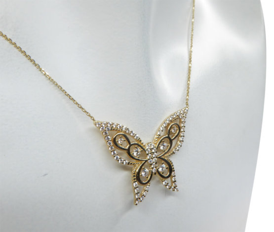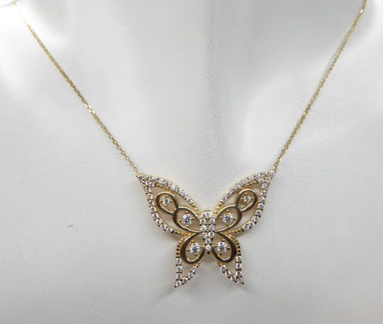 Deze 14 karaat zirkonia vlinder hanger is een prachtig sieraad om te dragen.