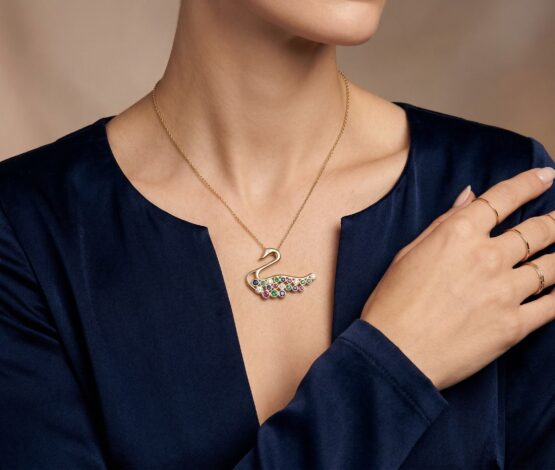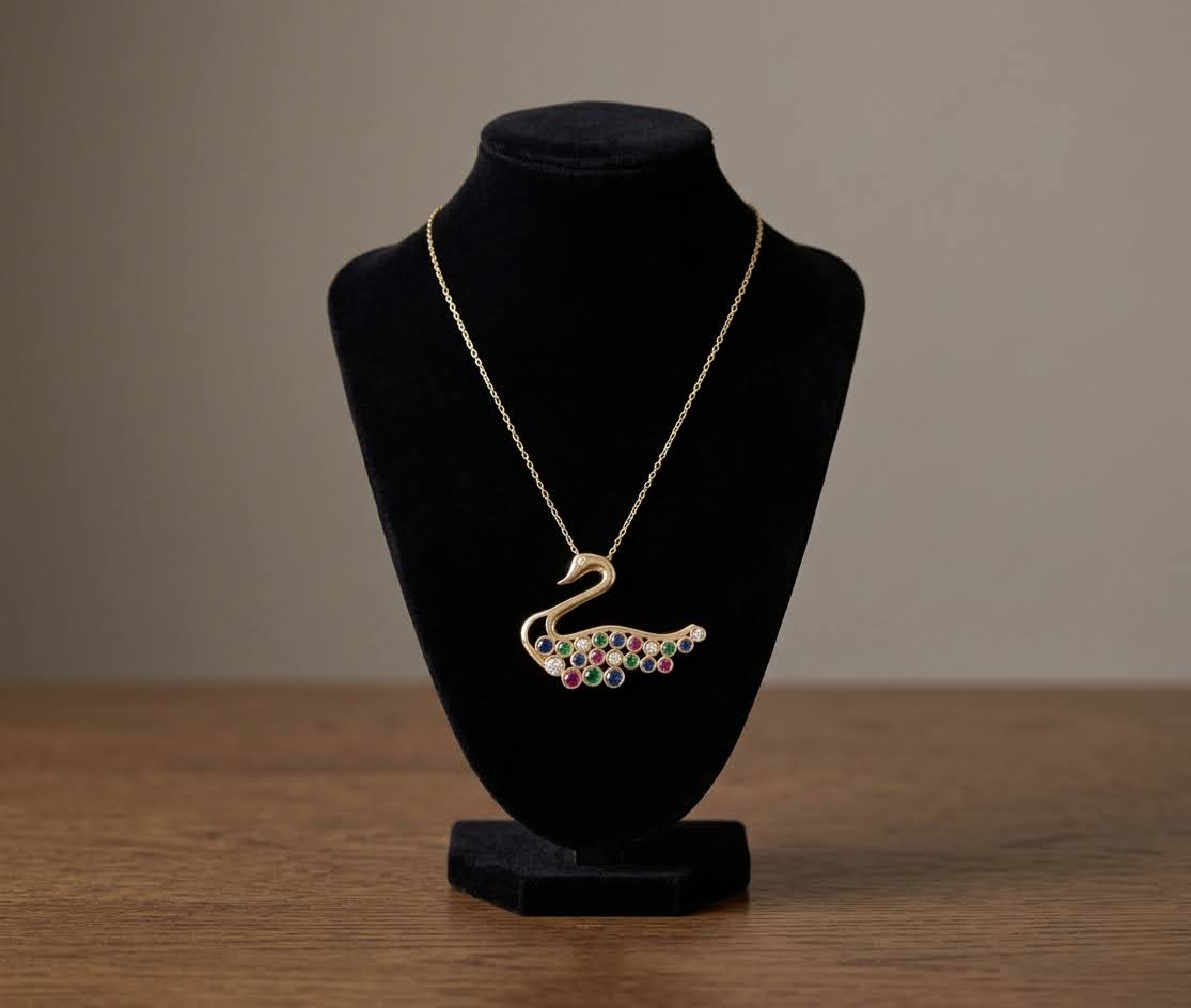 Deze gouden gekleurde zirkonia zwaan hanger is een prachtig sieraad.