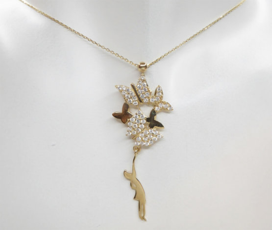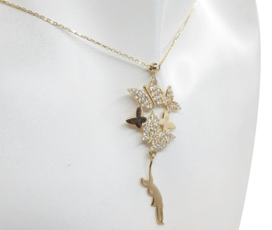 Deze gouden meisje met vlinders hanger is een prachtig sieraad om te dragen.