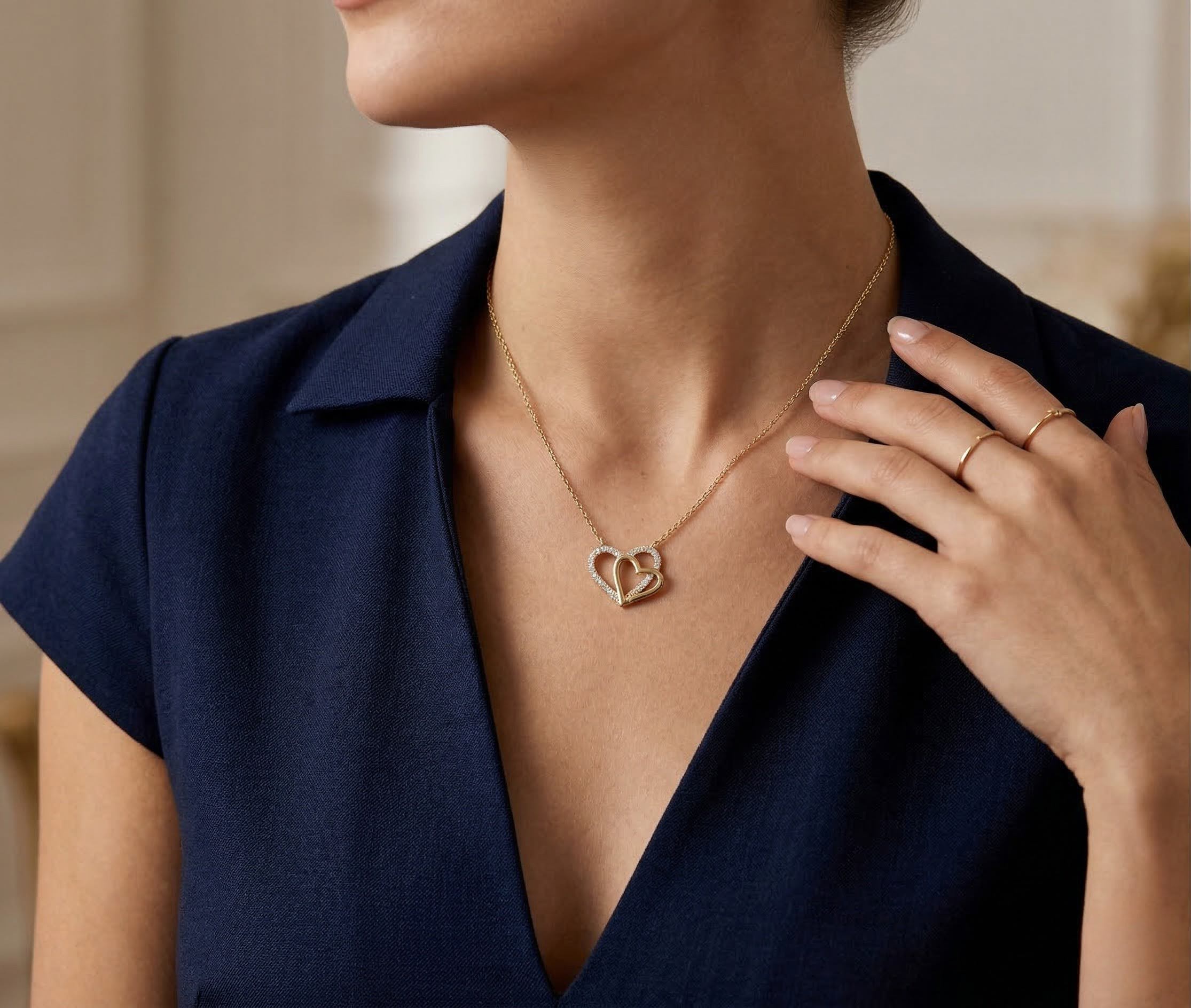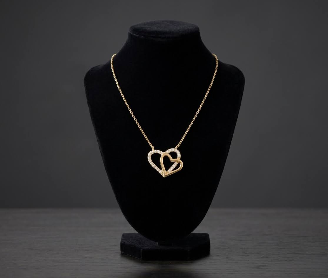 Deze gouden dubbele harten hangers is een prachtig sieraad om te dragen.