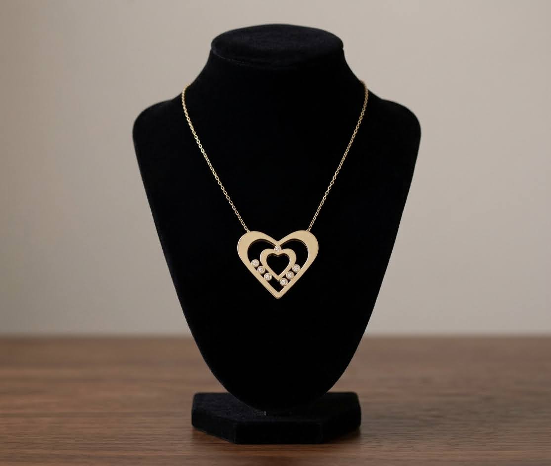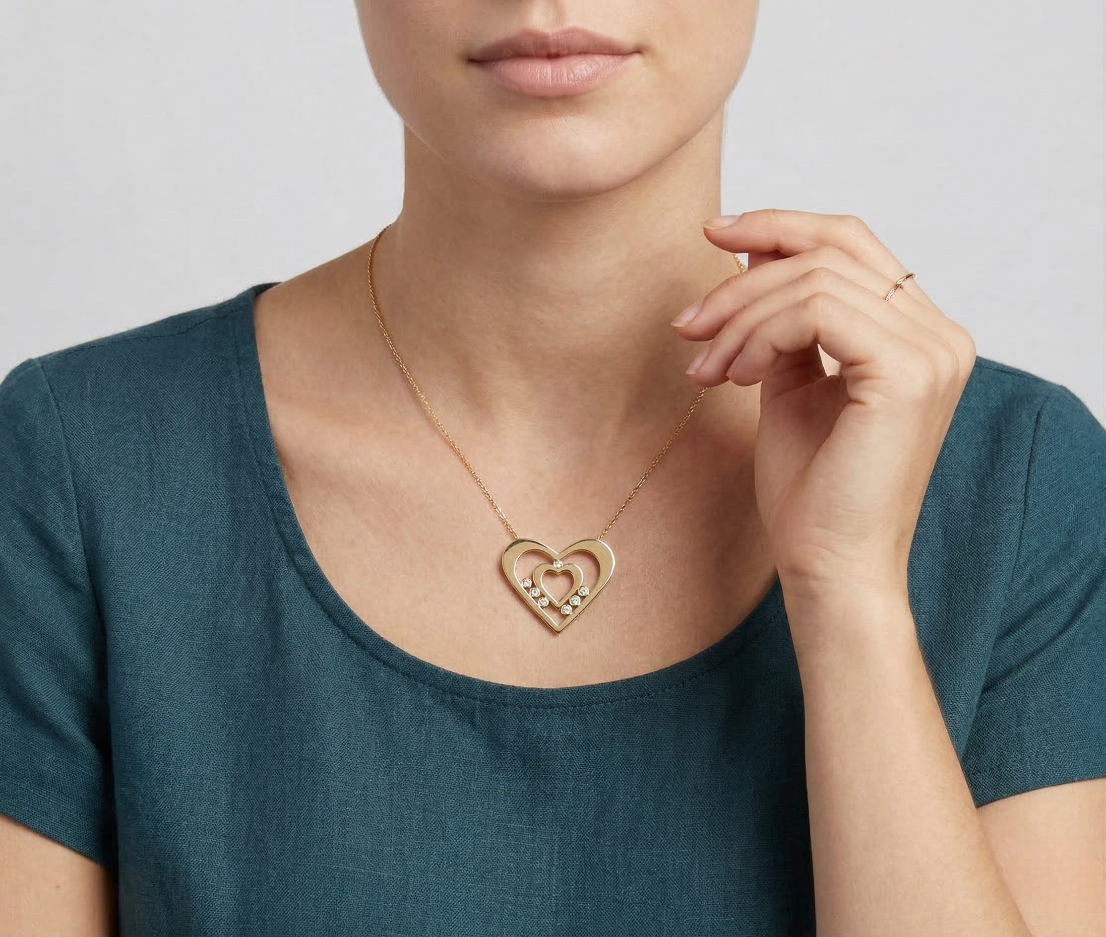 Deze gouden zirkonia dubbele harten hanger is een prachtig sieraad om te dragen.