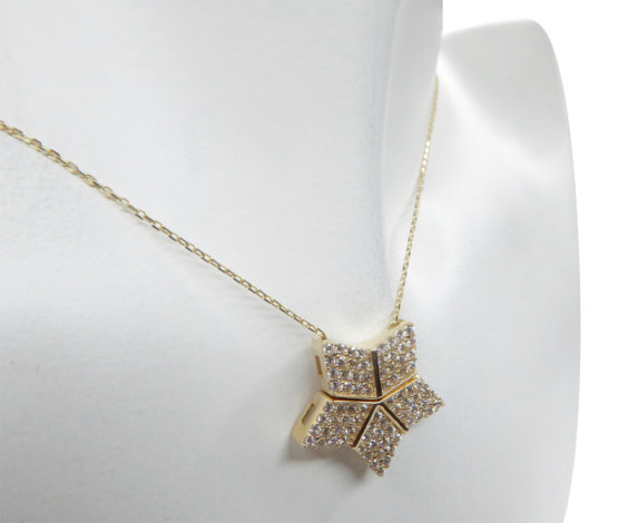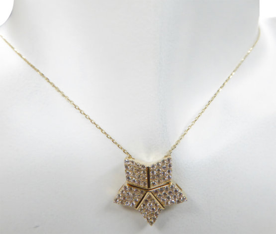 Deze gouden ster hanger met uitschuifbare hart is een prachtig sieraad.