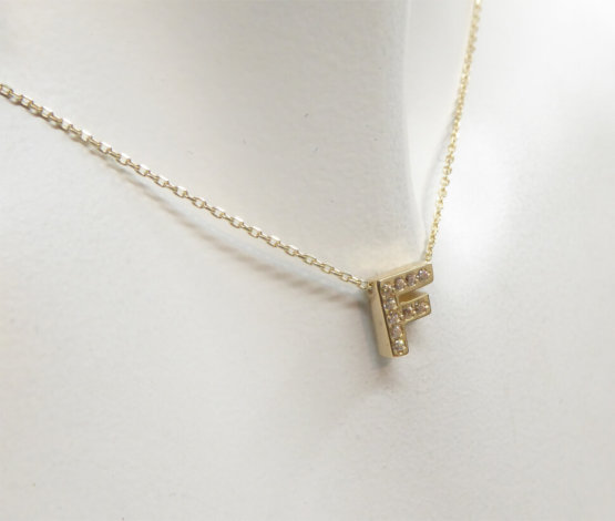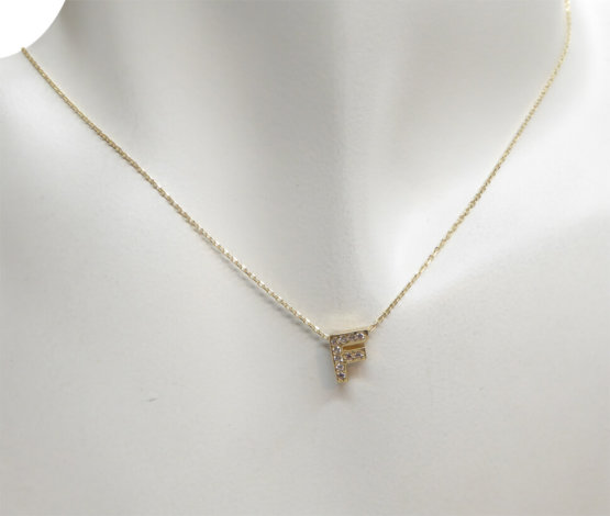 Deze gouden ketting met F zirkonia hanger is een prachtig sieraad om te dragen.