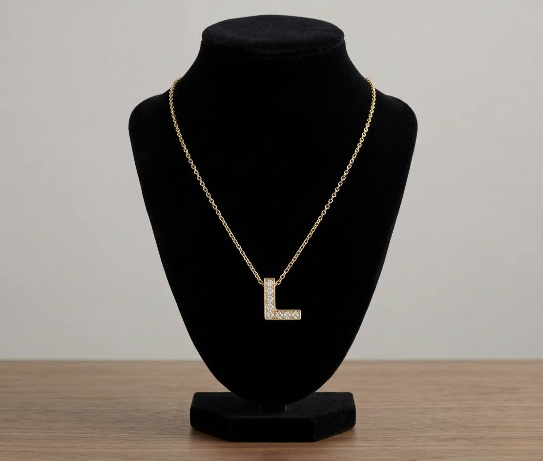 Deze gouden ketting met L zirkonia hanger is een prachtig sieraad om te dragen.