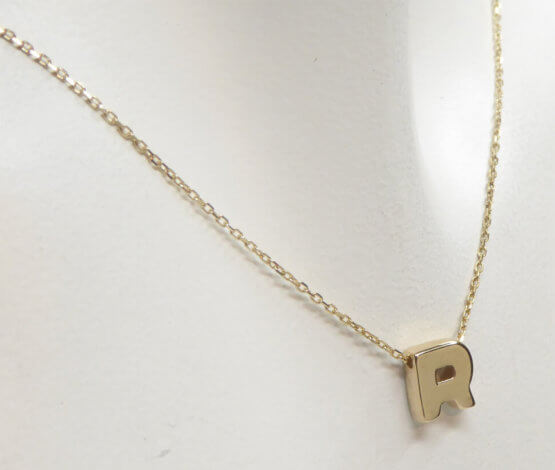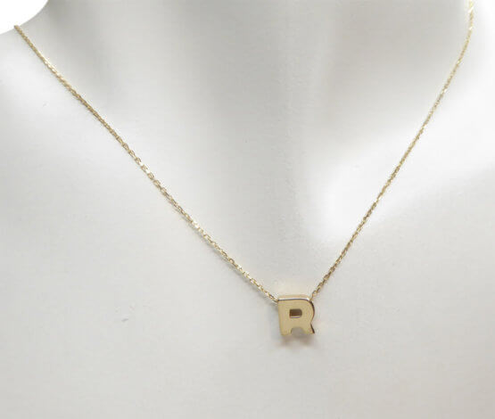 Deze gouden ketting met R hanger is een prachtig sieraad om te dragen.