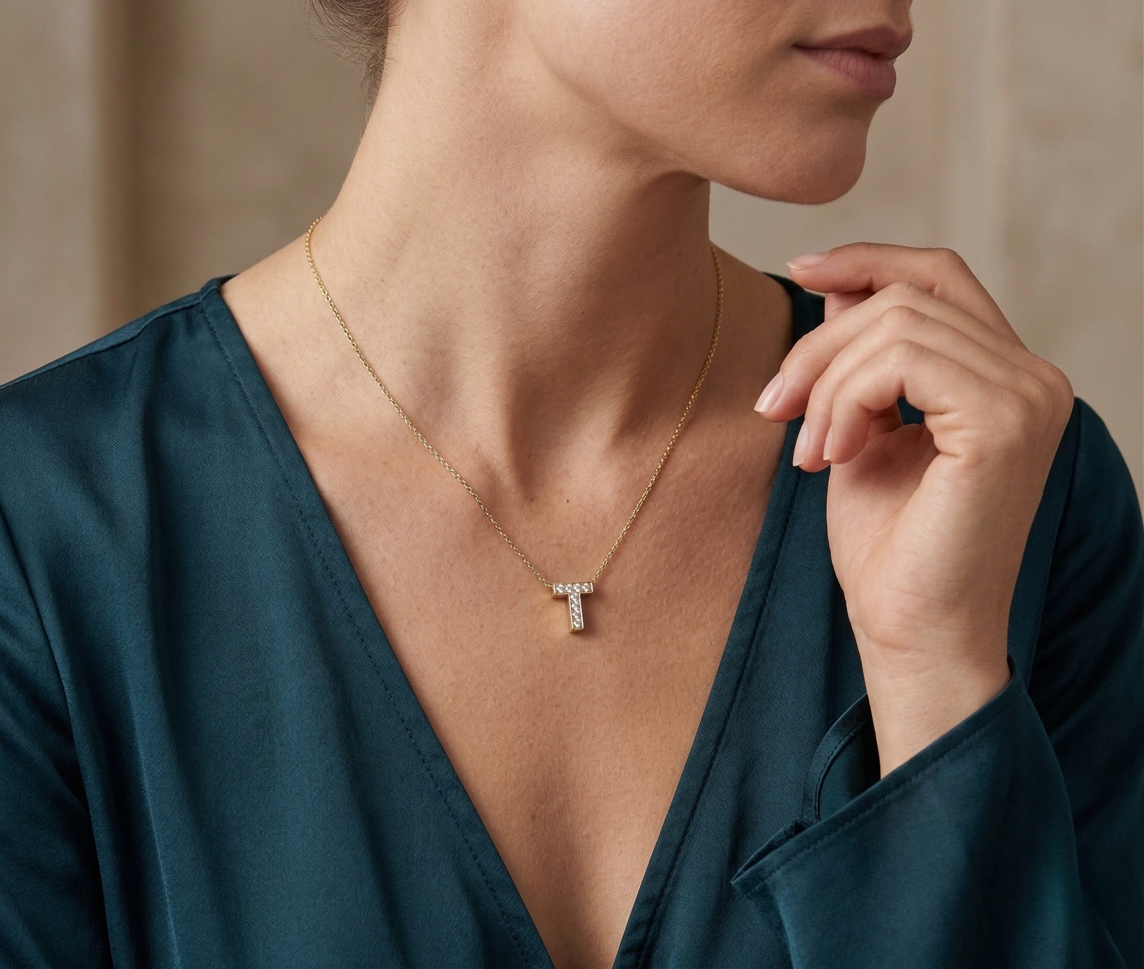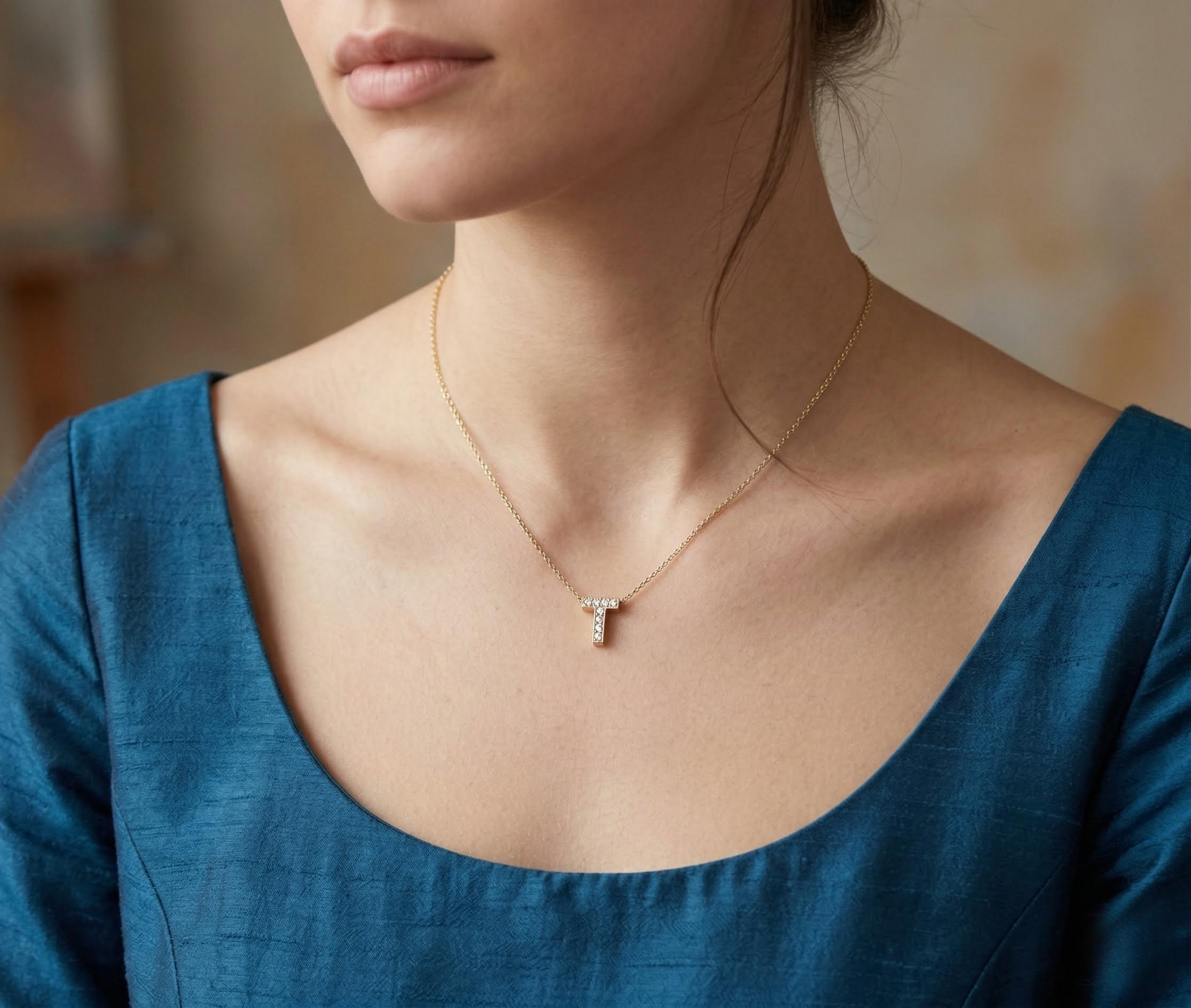 Deze gouden ketting met T zirkonia hanger is een prachtig sieraad om te dragen.