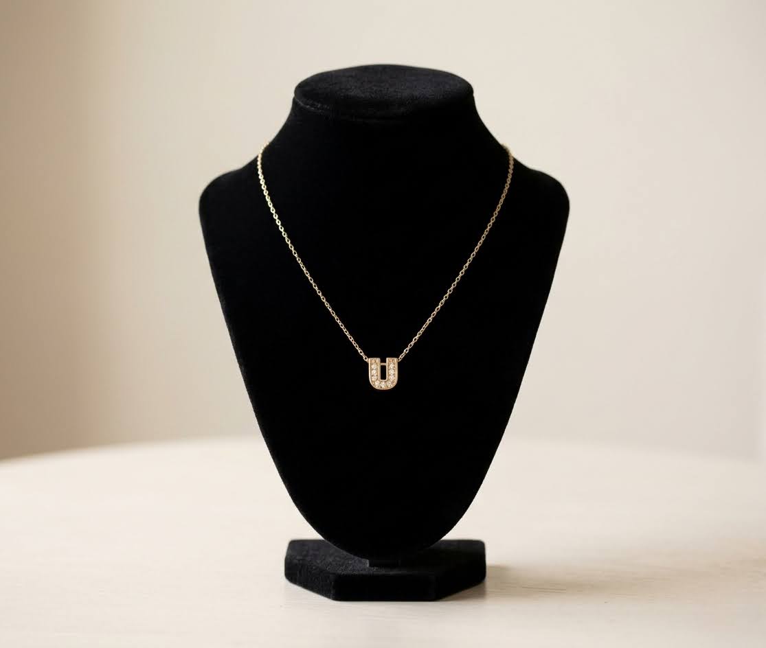 Deze gouden ketting met U zirkonia hanger is een prachtig sieraad om te dragen.