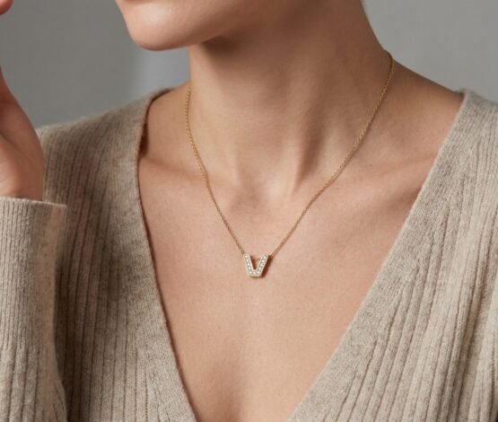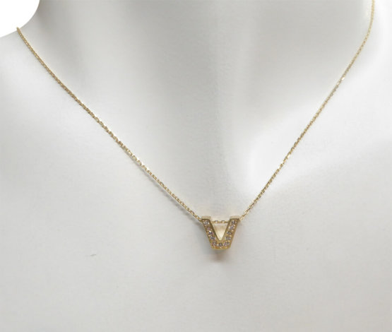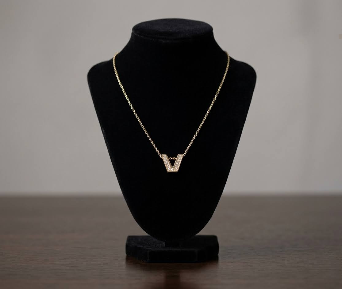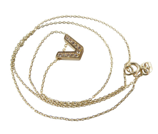 Deze gouden ketting met V zirkonia hanger is een prachtig sieraad om te dragen.