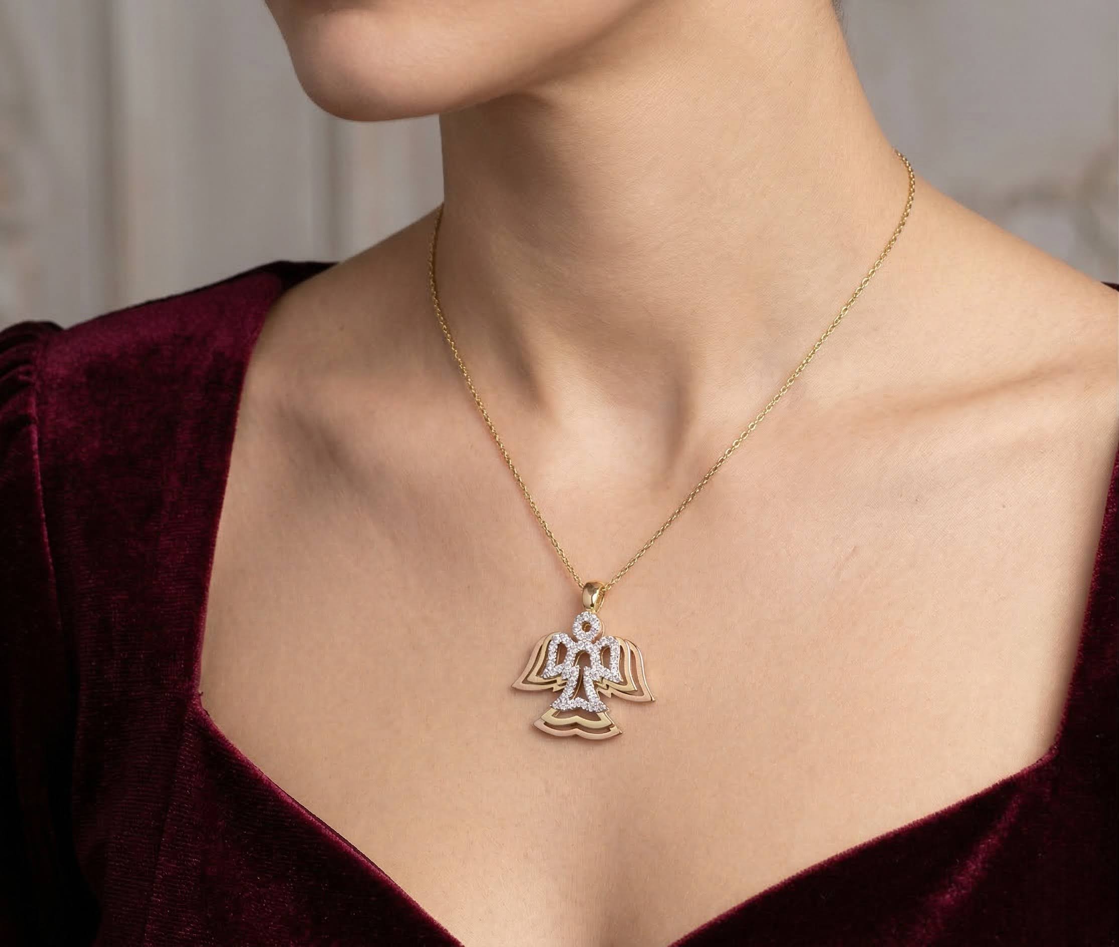 Deze gouden zirkonia engel hanger is een prachtig sieraad om te dragen.