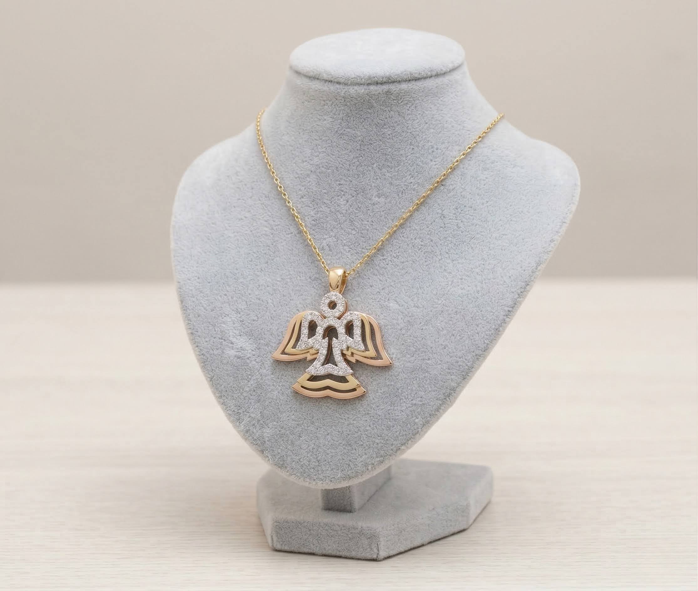 Draagt u graag geel gouden hangers? Bestel uw Christian 14 karaat tricolor gouden zirkonia engel hanger direct via atelierchristian.nl!