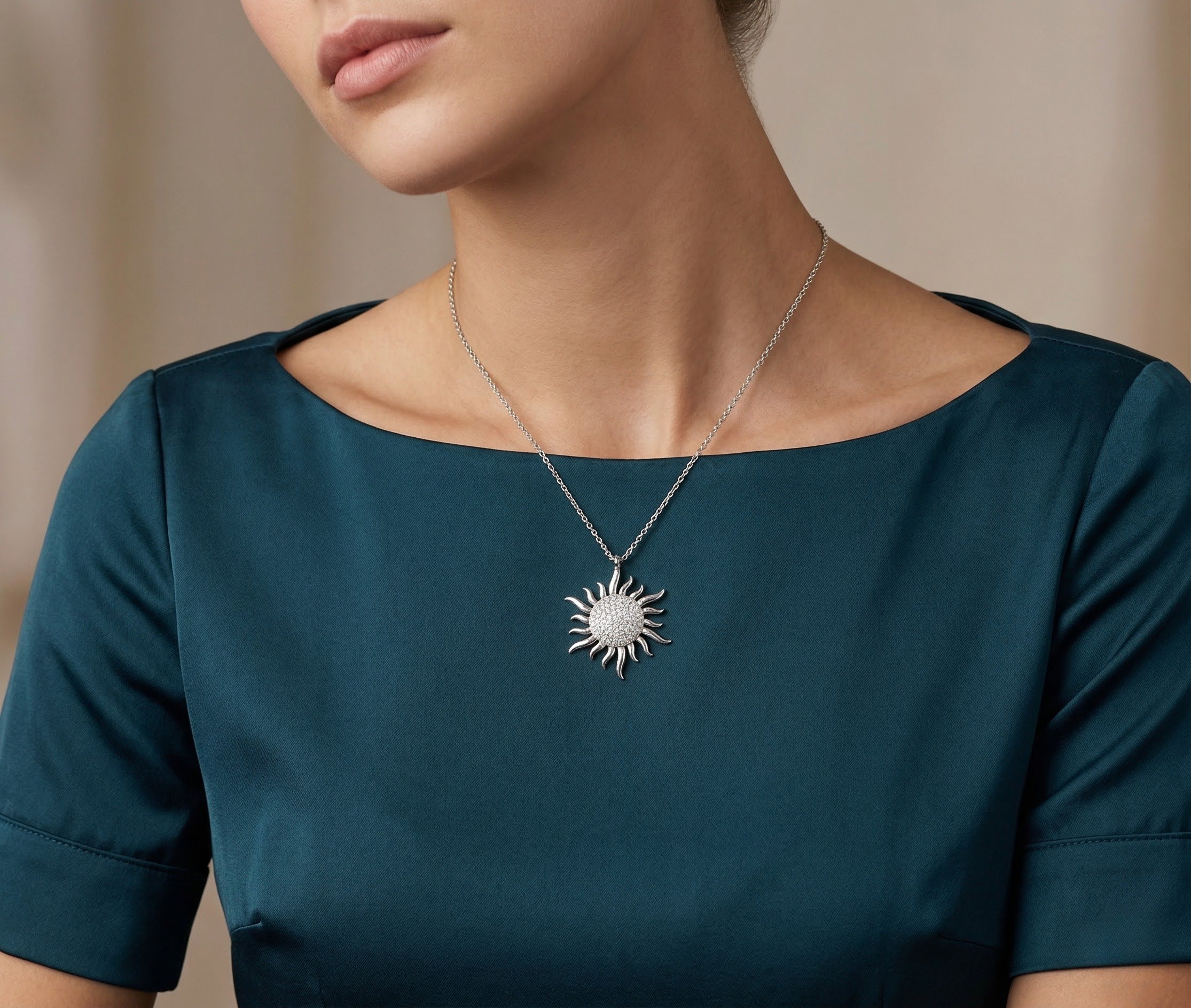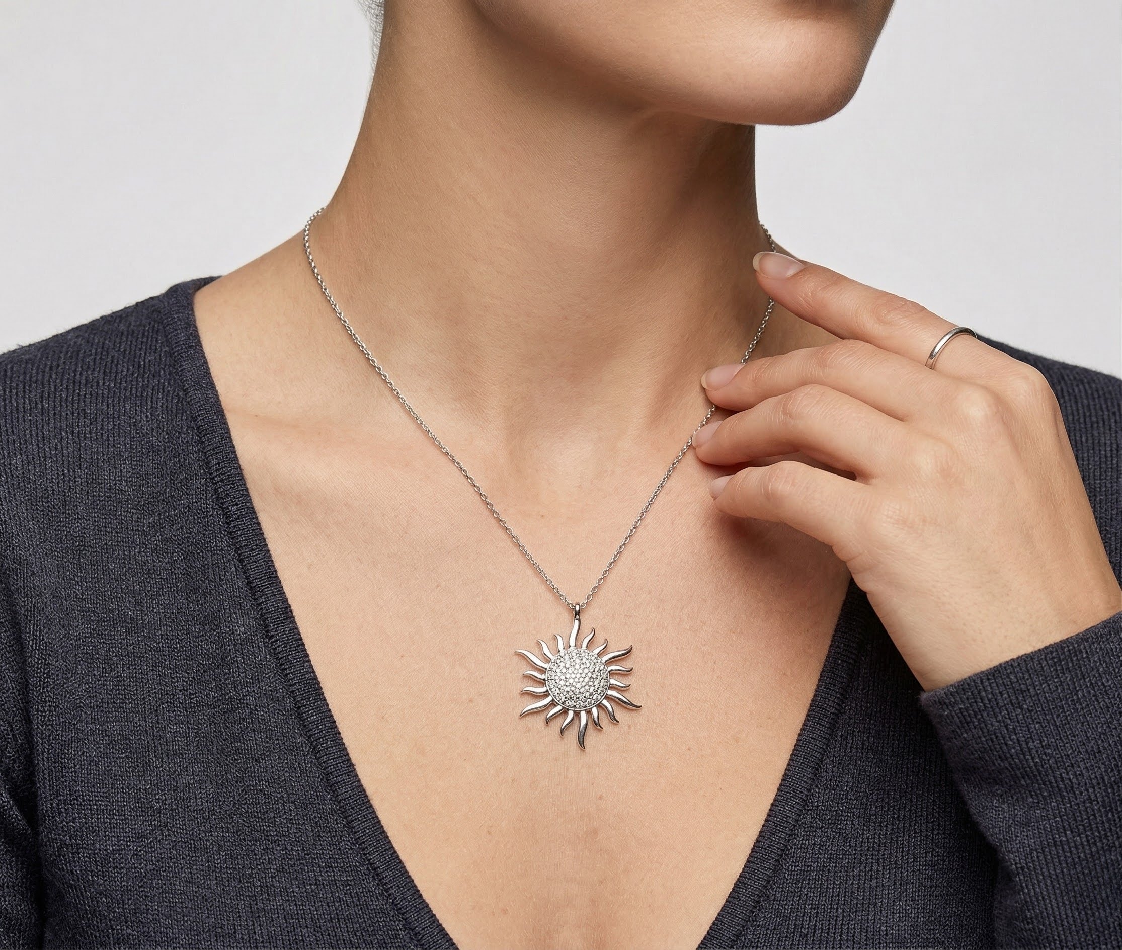 De wit gouden collier en zirkonia zonnehanger is een prachtig sieraad om te dragen.