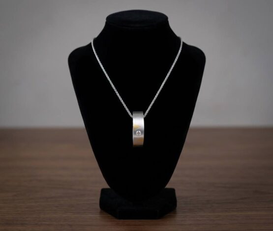 Deze wit gouden gebogen hanger met diamant is een prachtig sieraad om te dragen. Deze hanger valt direct op vanwege het mooie ontwerp.