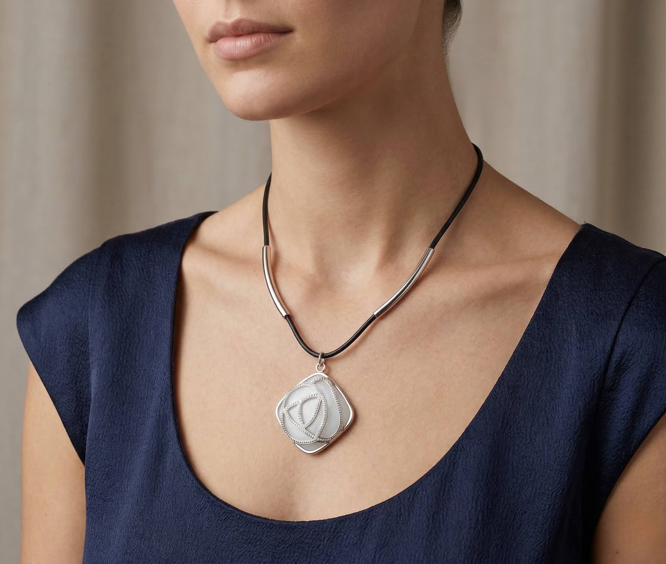 Deze zilveren hanger met leer is een prachtig sieraad.