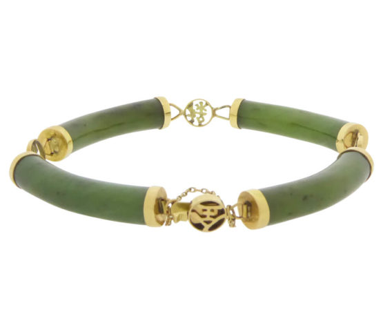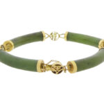 De 14 karaat geel gouden armband met jade is een prachtig sieraad om te dragen.