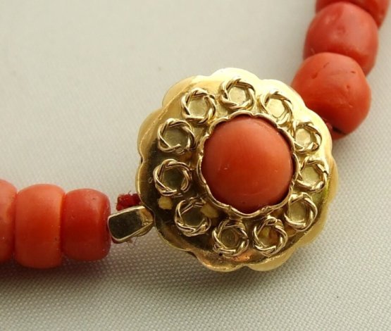 Bloedkoraal collier met gouden sluiting