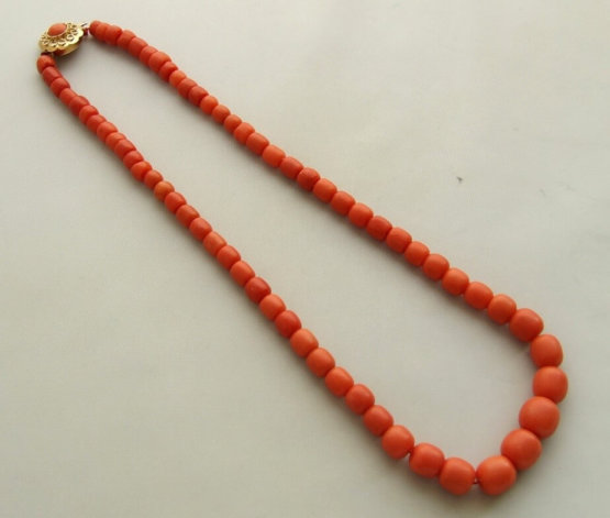 Bloedkoralen sieraden zijn bijzonder en zeldzaam. Het bloedkoraal in deze collier is tot op wel 300 meter diepte gewonnen. Van de verschillende edelkoralen is bloedkoraal het meest gewild. Bloedkoraal kan een felrode kleur hebben, maar ook rood-oranje zijn. Bloedkoraal is zeldzaam omdat het niet meer uit de zee mag worden gewonnen. Er is nog maar heel weinig mooi bloedkoraal over. Ieder sieraad met bloedkoraal is waardevol.
