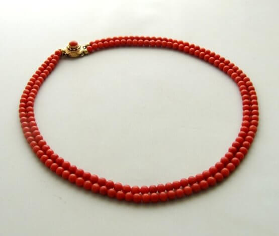 Bloedkoralen sieraden zijn bijzonder en zeldzaam. Het bloedkoraal in deze collier is tot op wel 300 meter diepte gewonnen. Van de verschillende edelkoralen is bloedkoraal het meest gewild. Bloedkoraal kan een felrode kleur hebben, maar ook rood-oranje zijn. Bloedkoraal is zeldzaam omdat het niet meer uit de zee mag worden gewonnen. Er is nog maar heel weinig mooi bloedkoraal over. Ieder sieraad met bloedkoraal is waardevol.