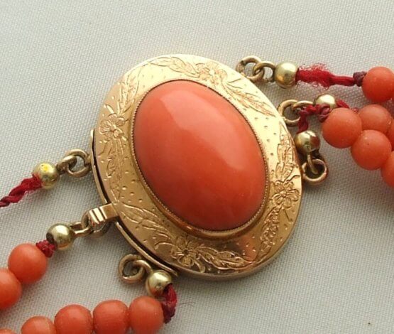 Bloedkoralen sieraden zijn bijzonder en zeldzaam. Het bloedkoraal in deze collier is tot op wel 300 meter diepte gewonnen. Van de verschillende edelkoralen is bloedkoraal het meest gewild. Bloedkoraal kan een felrode kleur hebben, maar ook rood-oranje zijn. Bloedkoraal is zeldzaam omdat het niet meer uit de zee mag worden gewonnen. Er is nog maar heel weinig mooi bloedkoraal over. Ieder sieraad met bloedkoraal is waardevol.