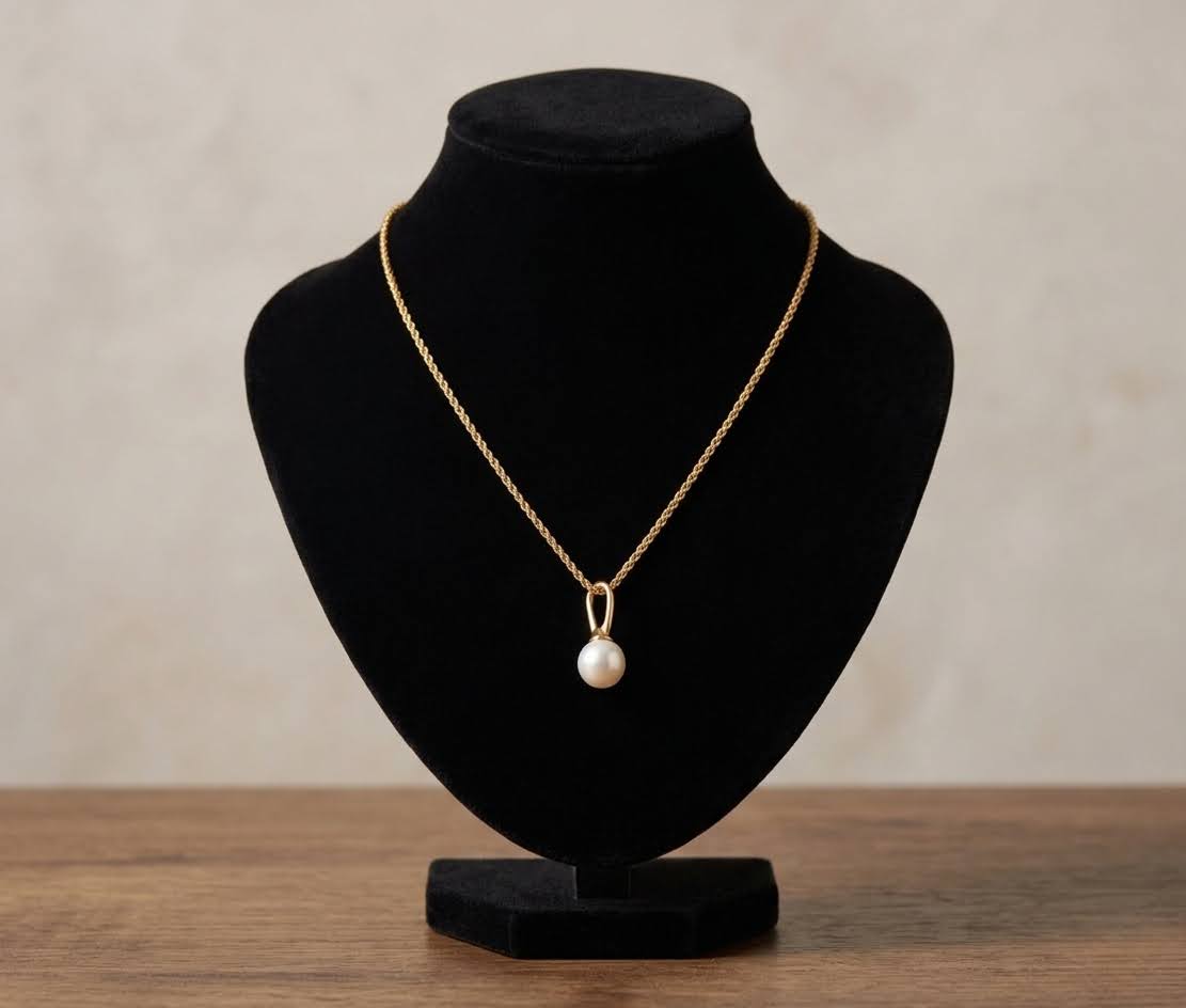 De geel gouden collier met parelhanger is een prachtig sieraad om te dragen. Het gouden slot is een magneet slot.