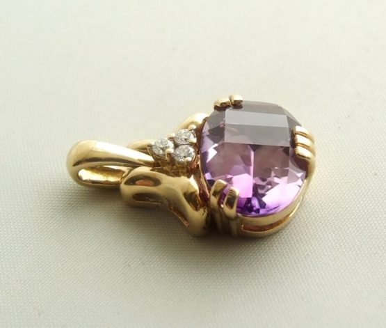 De gouden hanger met amethist is een prachtig sieraad om te dragen.