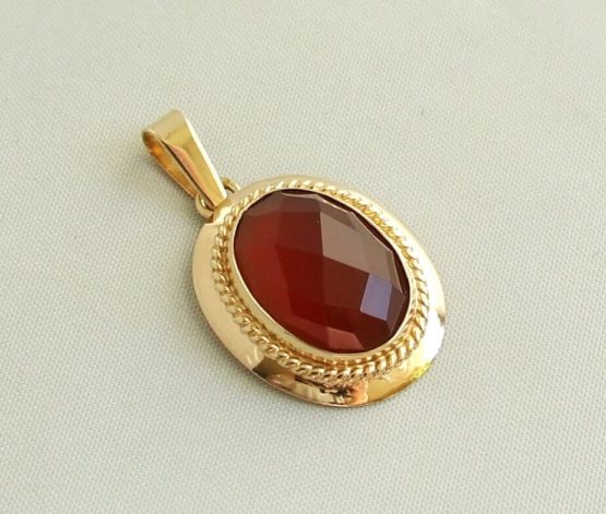 De gouden hanger met carneool is een prachtig sieraad om te dragen.