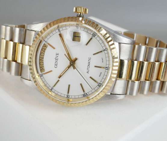Dit 14 karaat bicolor Geneve horloge is een uniek geel- en wit gouden sieraad.