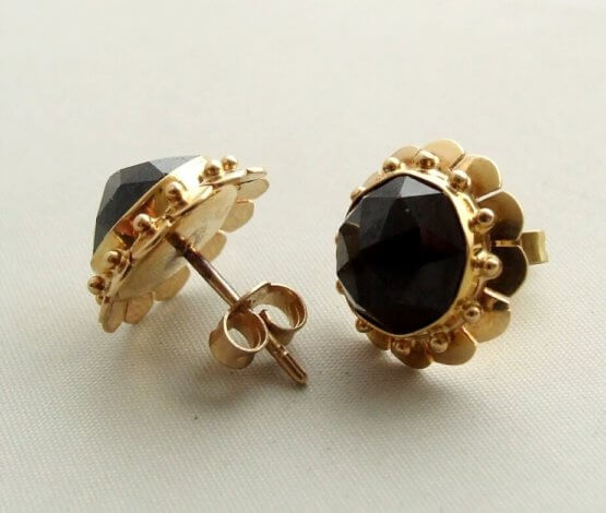 De 14 karaat gouden oorbellen met granaat zijn prachtige sieraden om te dragen.