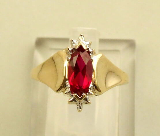 De synthetische robijn is van zeer mooie kwaliteit. Robijn dankt zijn naam aan de rode kleur (La. ruber), en is een variant van het korundmineraal. Het meest begeerd van alle robijnen zijn robijnen met duivenbloedkleur: een zuiver rode kleur met een lichte blauwe zweem. Robijn is een van de duurste edelstenen en grote robijnen zijn zeldzaam, meer zelfs dan vergelijkbare diamanten.