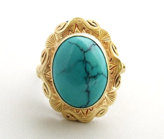 De geel gouden ring met turkoois is een prachtig sieraad om te dragen. Dit sieraad is uniek.