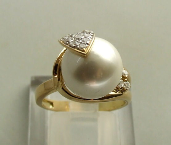 De gouden ring met parel en zirkonia is een prachtig sieraad om te dragen. Parels zijn zeldzame sierstenen.