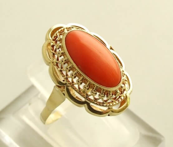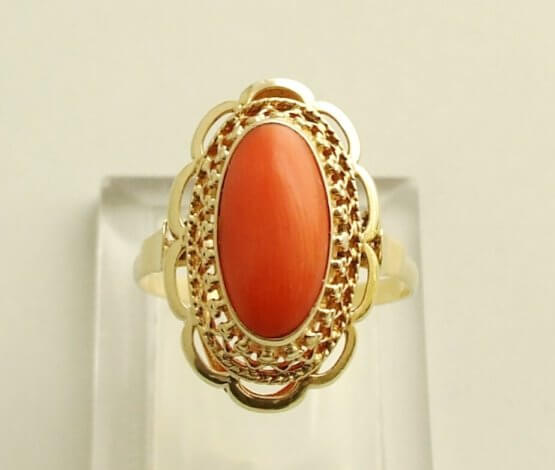 Draagt u graag sieraden met bloedkoraal? Bestel uw 14 karaat geel gouden vintage ring met bloedkoraal direct via atelierchristian.nl!