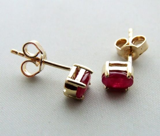 Deze gouden oorbellen met synthetische robijn zijn prachtige sieraden.