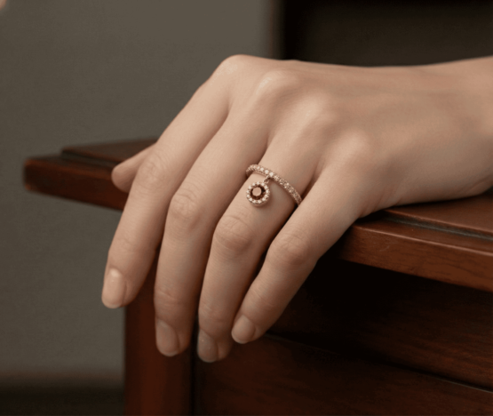 De 14 karaat geel- en rosé gouden ring met hanger is een prachtig sieraad om te dragen.