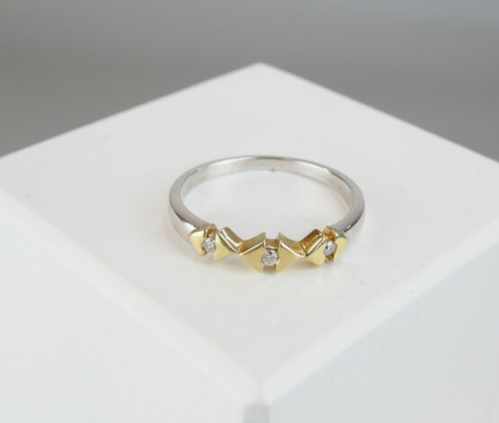 Deze bicolor gouden ring met 3 diamanten is een prachtig sieraad om te dragen.