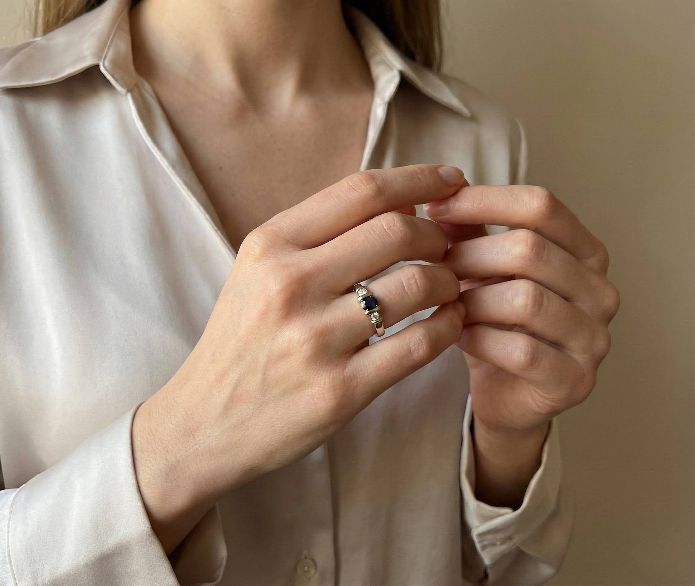 De bicolor gouden ring met diamant en saffier is een prachtig sieraad om te dragen.