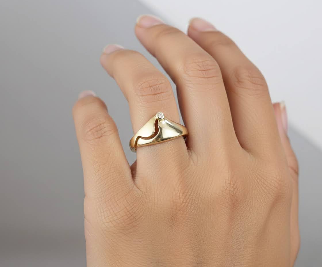 Bestel uw 14 karaat fantasie ring met 1 briljant direct via atelierchristian.nl!